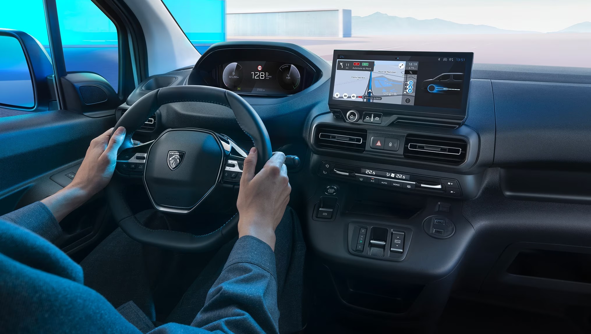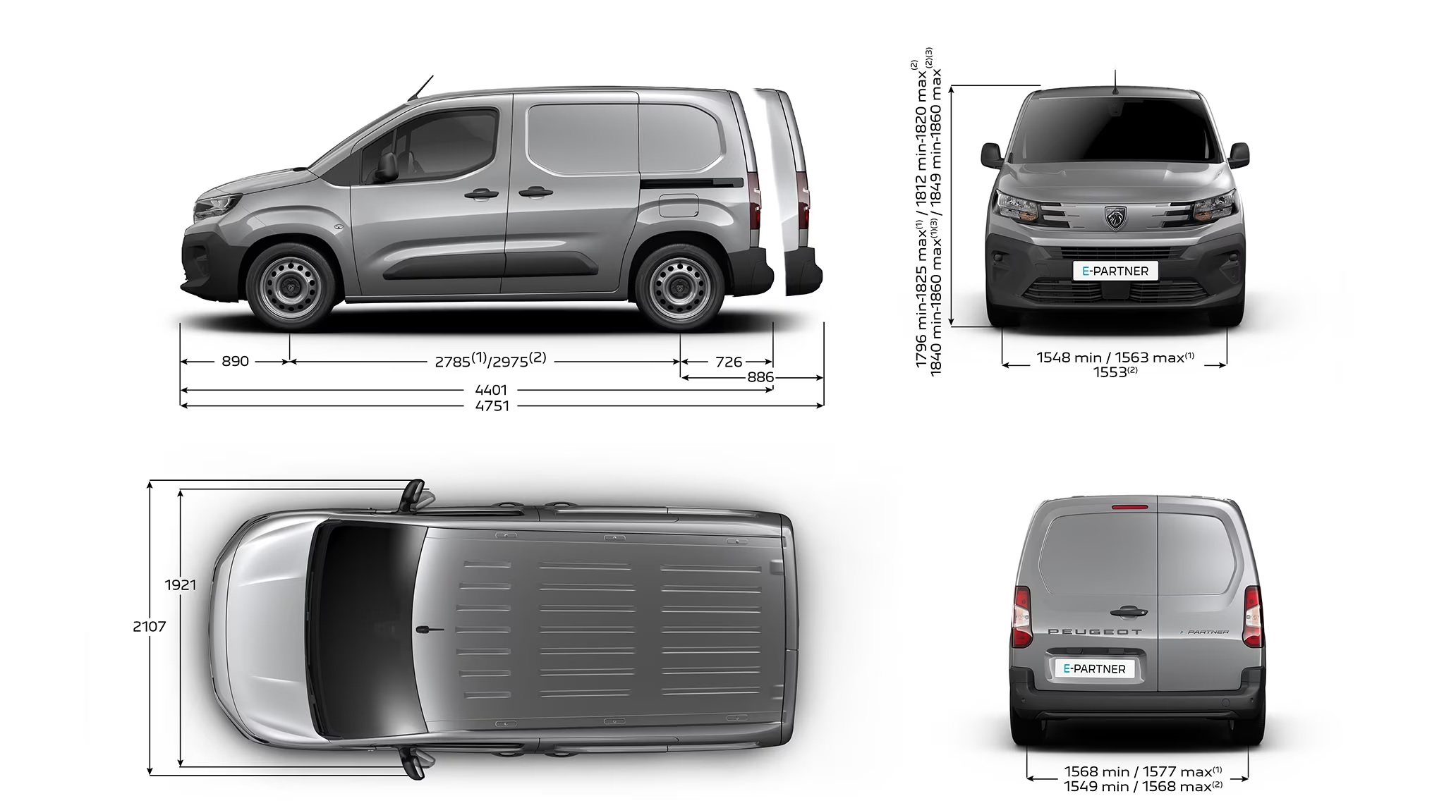 PEUGEOT Partner har en ny balans i proportionerna, vilket ger den en exklusiv framtoning som en liten, smidig och kompakt skåpbil. En kraftfull front med kort motorhuv, en ny vertikal utformning av kylargrillen, en framskjuten vindruta och märkets nya ljussignatur. Den höga midjelinjen med kortare överhäng fram och bak ger PEUGEOT Partner ett mycket kraftfullt uttryck.